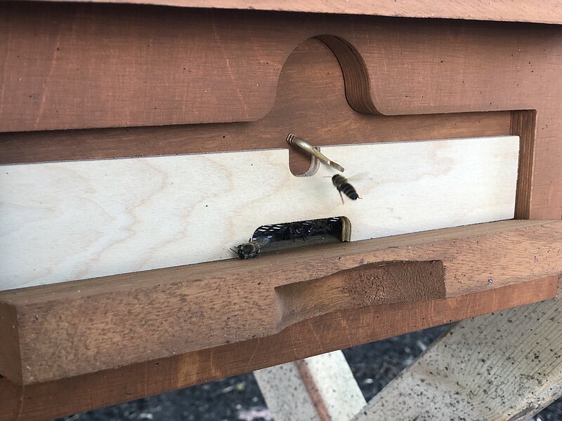 Zu Beginn der Sommerferien sind unsere Bienen in die neue Beute eingezogen. Zu finden sind sie ab sofort hinter dem Haus B zwischen Bewegungshof und Lehrerparkplatz.